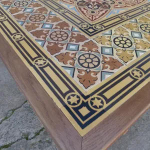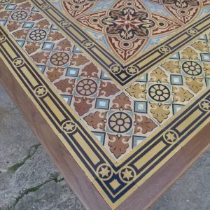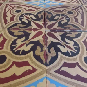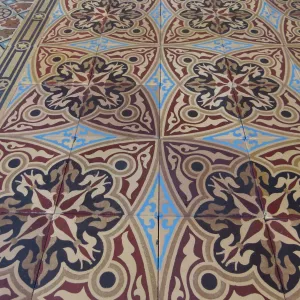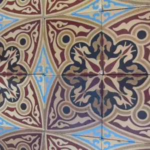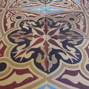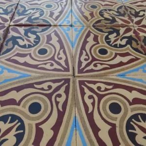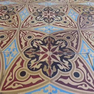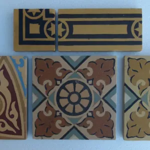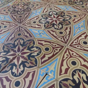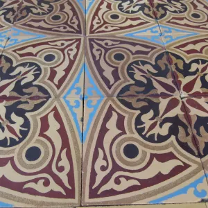 Our antique tiles were originally handmade in single or two tile molds. Pre-computer fabrication these molds were machined by hand & the colour slips to create the tile were mixed by measure and eye. When firing the tiles, the kiln temperatures of c.1,100F degrees could also be variable. The result of this production process is that tiles made during this period of non-automation often display subtle size & thickness variations and there can be tonal variations in colors, all of which add to their charm and uniqueness. When photographing a floor, we always take a random section so that it is representative of the whole in tones and patina.