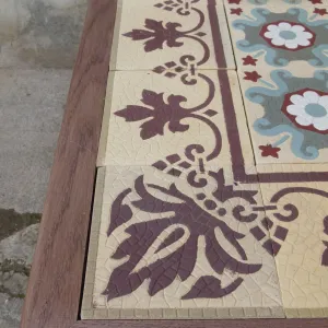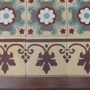 In the latter stages of restoration a preview of a rare, large and unique French Carrelages Ceramiques Boch Freres Maubeuge ceramic floor with its original borders.