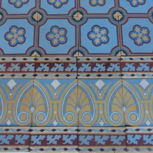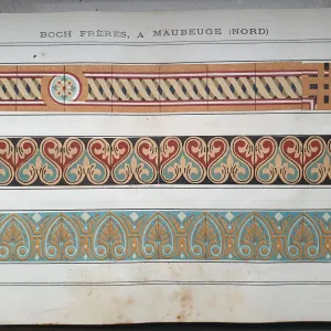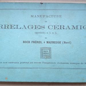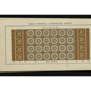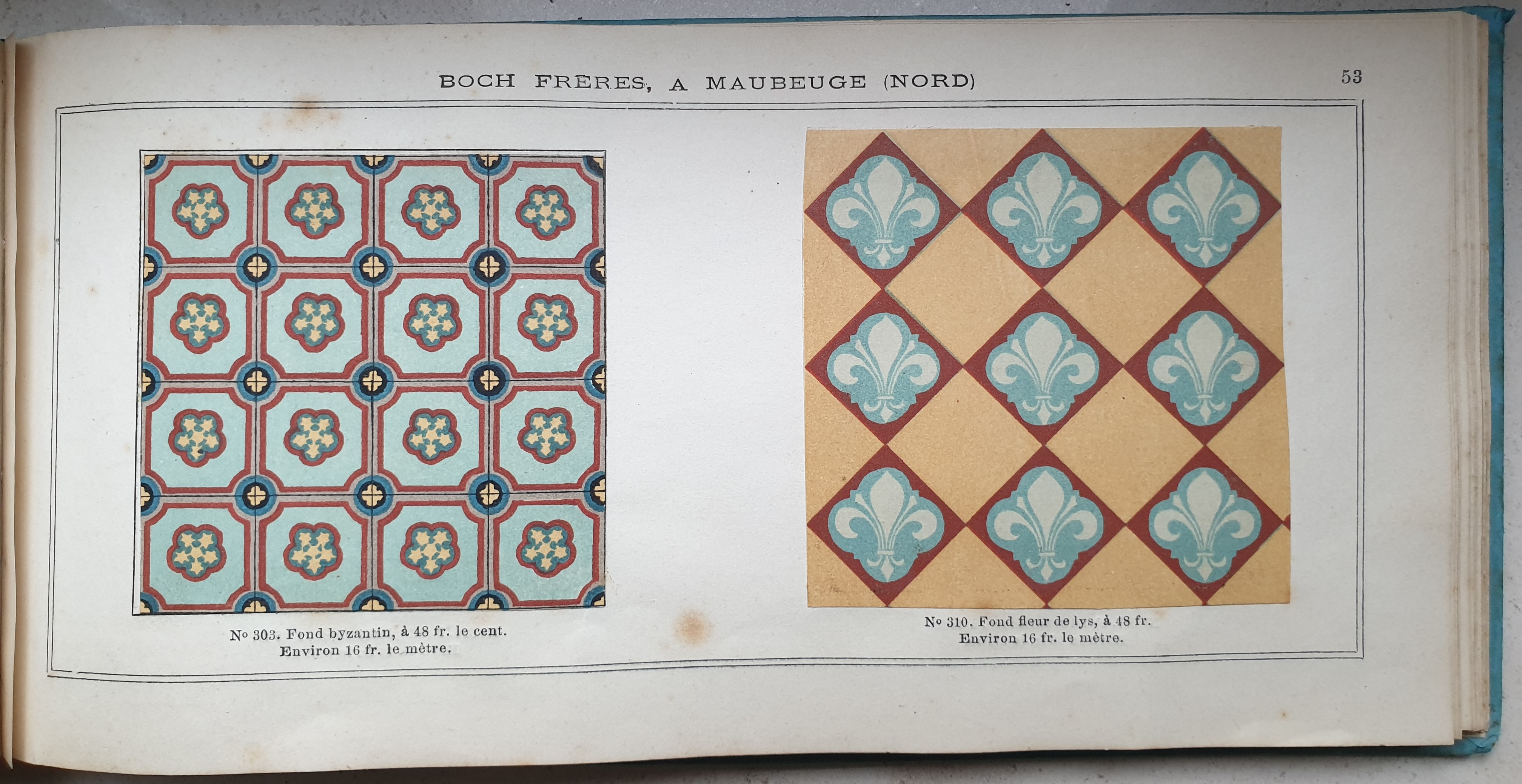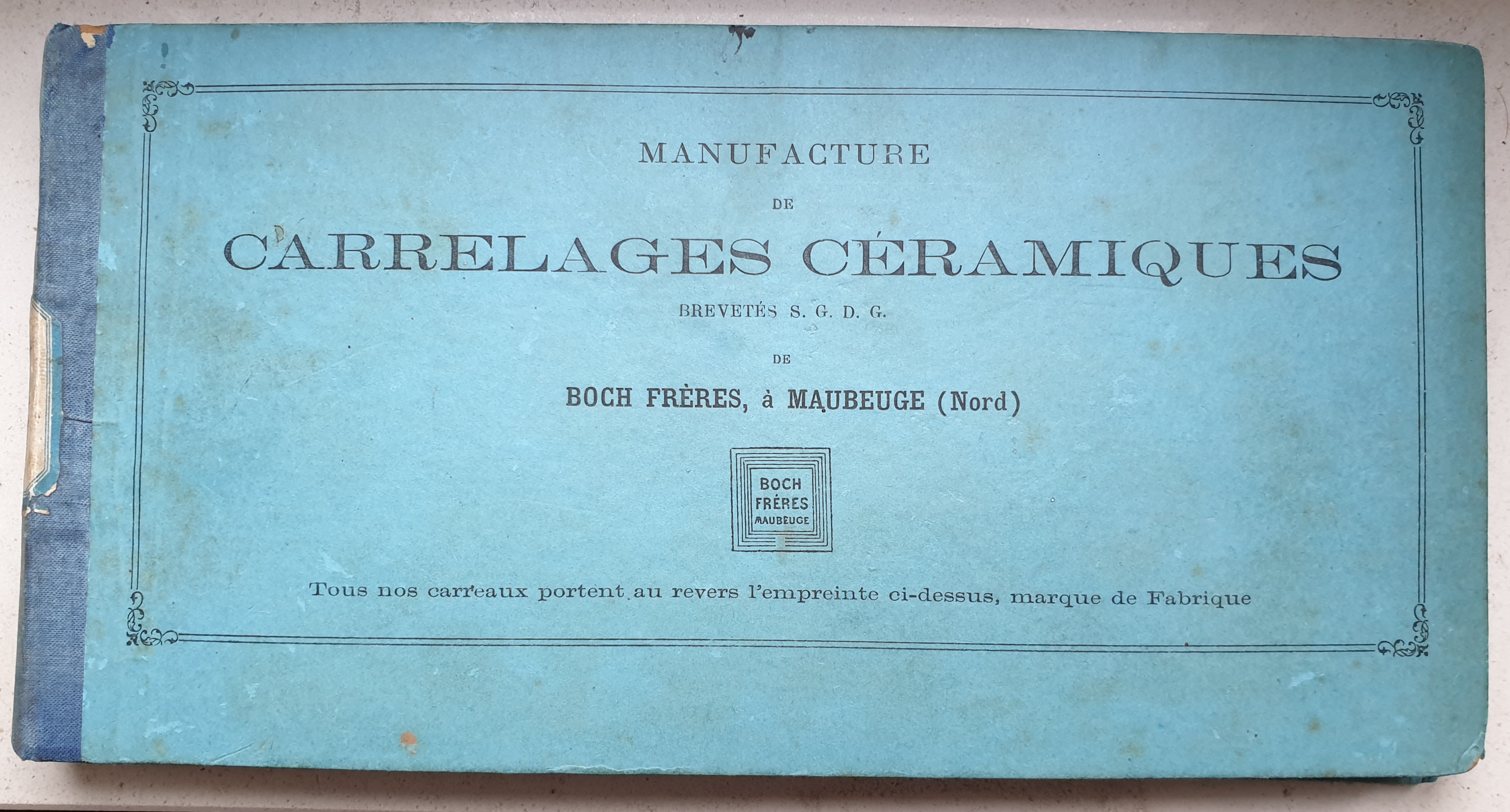 Included in the photo gallery are scans from the original 1881 Boch Frères catalogue presenting the field and large border tiles and scans from their 1900 catalogue also showing the tiles. The catalogue itself is a delightful glimpse into the refined tastes of the Belle Époque. These historical documents accompany detailed photographs of a randomly selected floor section, capturing the subtle interplay of pattern and palette.