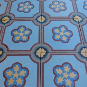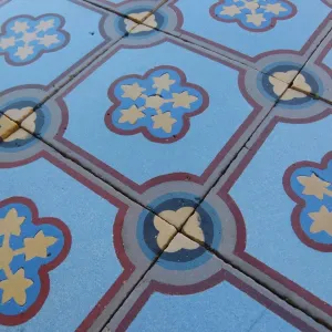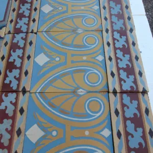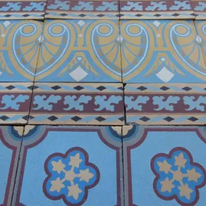 Our antique tiles were originally handmade in single or two tile molds. Pre-computer fabrication these molds were machined by hand & the colour slips to create the tile were mixed by measure and eye. When firing the tiles, the kiln temperatures of c.1,100F degrees could also be variable. The result of this production process is that tiles made during this period of non-automation often display subtle size & thickness variations and there can be tonal variations in colors, all of which add to their charm and uniqueness. When photographing a floor, we always take a random section so that it is representative of the whole in tones and patina.