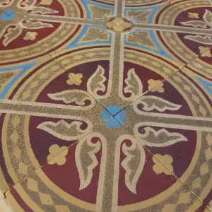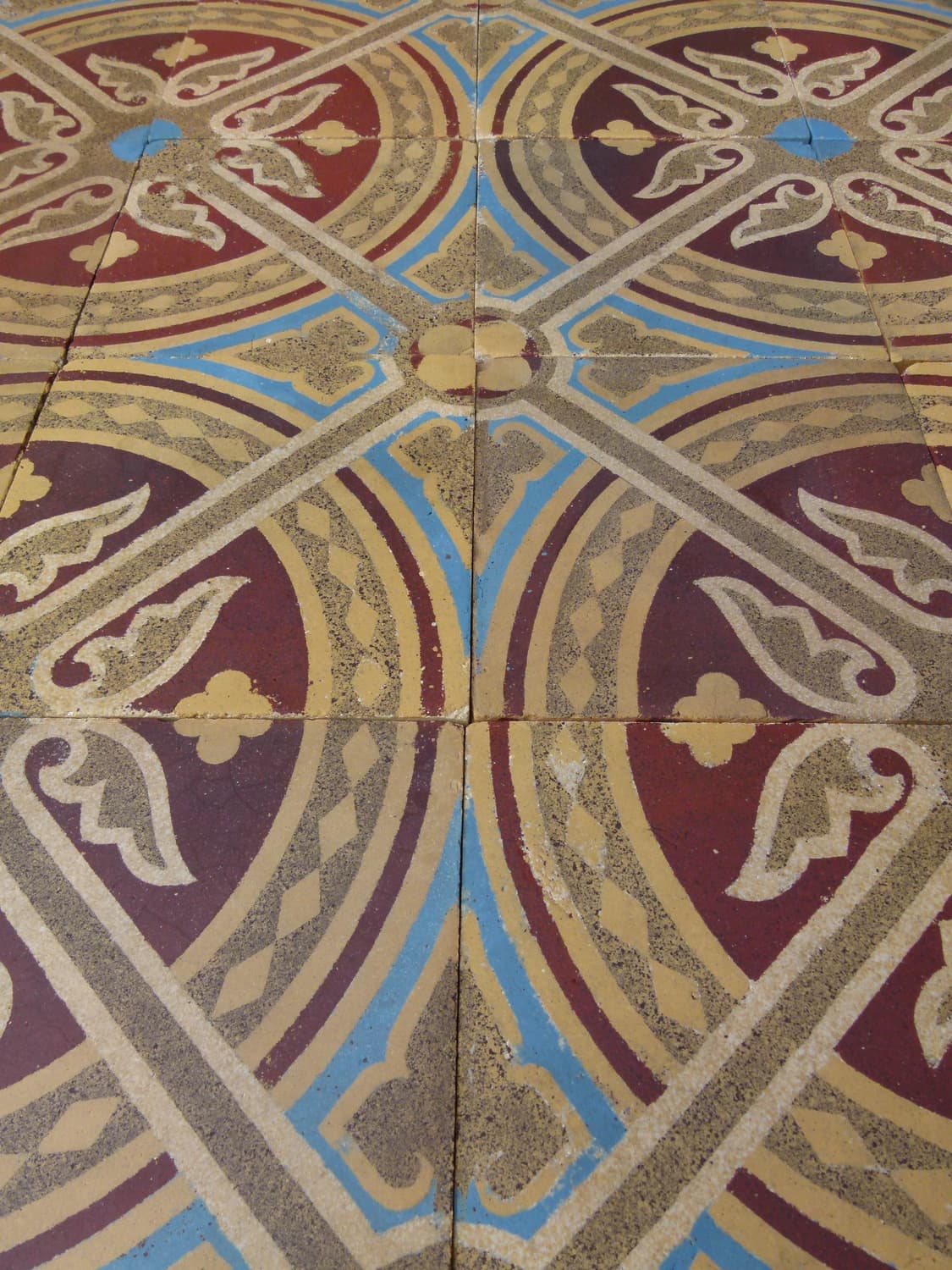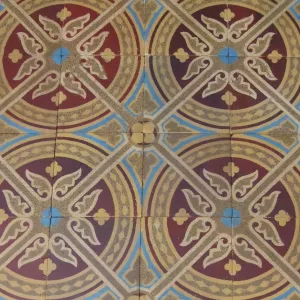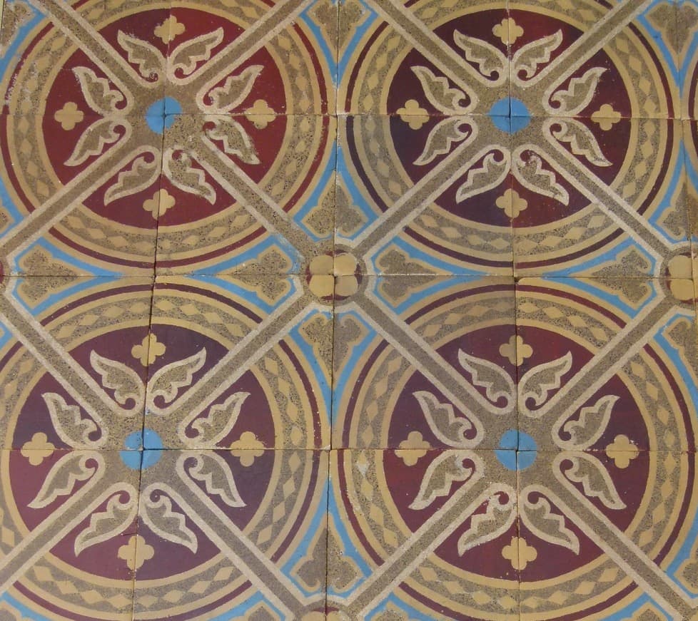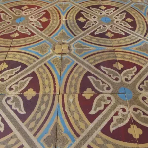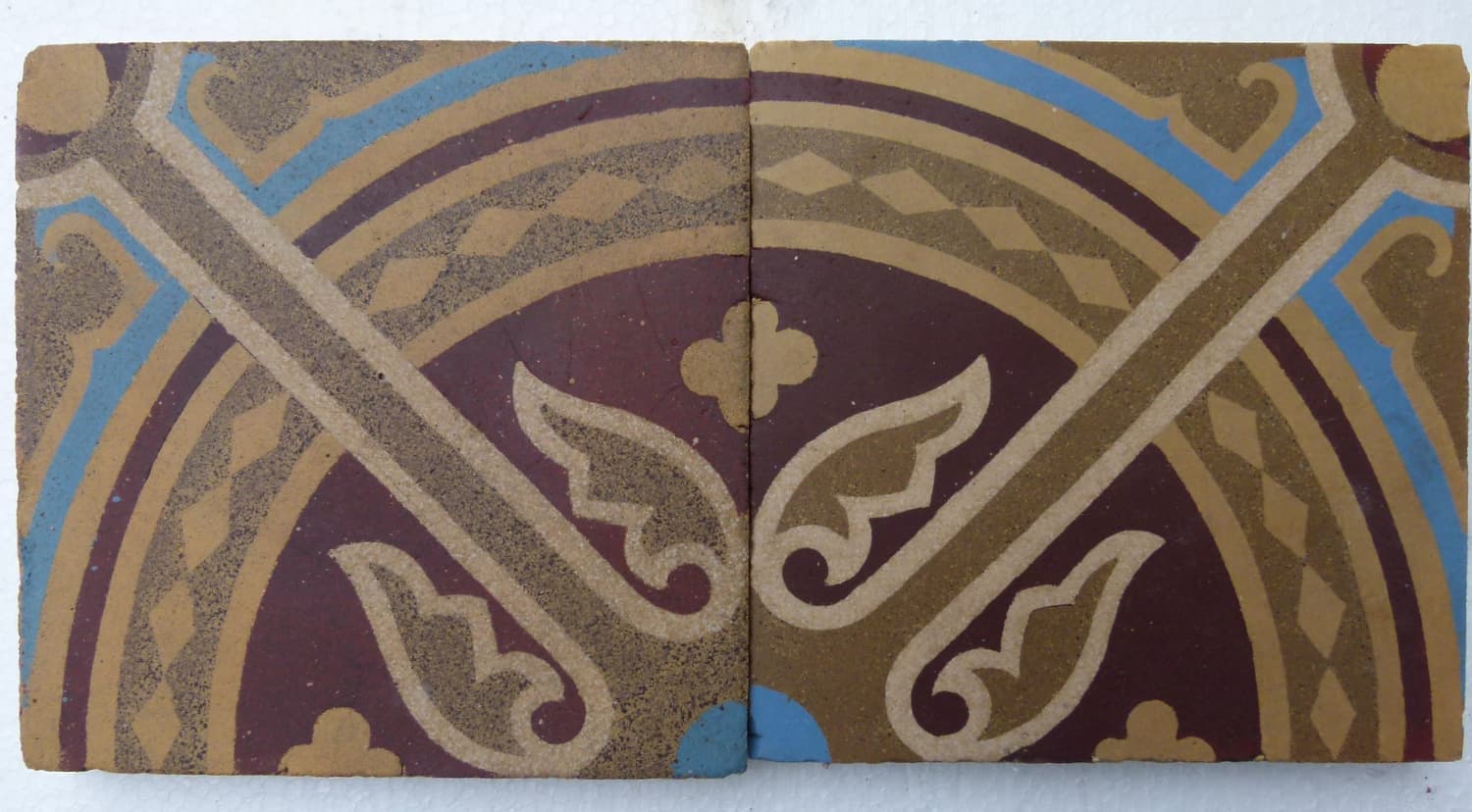 Our antique tiles were originally handmade in single or two tile molds. Pre-computer fabrication these molds were machined by hand & the colour slips to create the tile were mixed by measure and eye. When firing the tiles, the kiln temperatures of c.1,100F degrees could also be variable. The result of this production process is that tiles made during this period of non-automation often display subtle size & thickness variations and there can be tonal variations in colors, all of which add to their charm and uniqueness. When photographing a floor, we always take a random section so that it is representative of the whole in tones and patina.