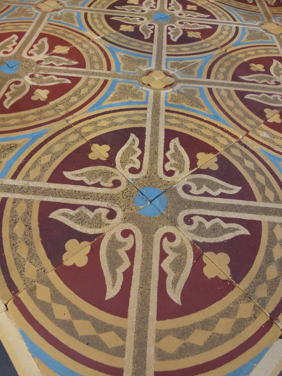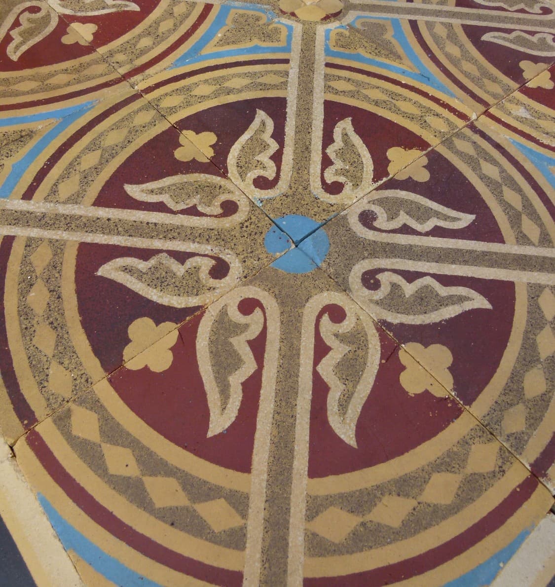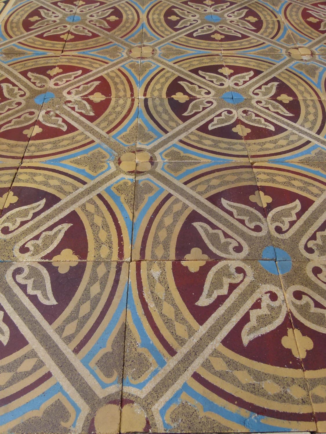 Our antique tiles were originally handmade in single or two tile molds. Pre-computer fabrication these molds were machined by hand & the colour slips to create the tile were mixed by measure and eye. When firing the tiles, the kiln temperatures of c.1,100F degrees could also be variable. The result of this production process is that tiles made during this period of non-automation often display subtle size & thickness variations and there can be tonal variations in colors, all of which add to their charm and uniqueness. When photographing a floor, we always take a random section so that it is representative of the whole in tones and patina.