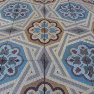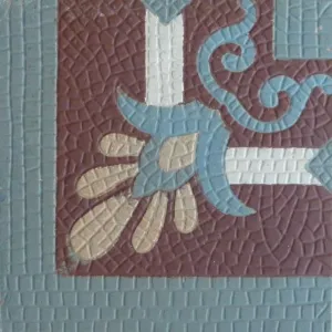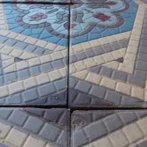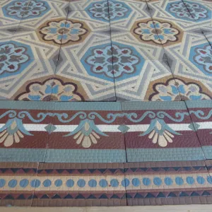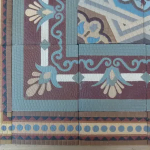Our antique tiles were originally handmade in single or two tile molds. Pre-computer fabrication these molds were machined by hand & the colour slips to create the tile were mixed by measure and eye. When firing the tiles, the kiln temperatures of c.1,100F degrees could also be variable. The result of this production process is that tiles made during this period of non-automation often display subtle size & thickness variations and there can be tonal variations in colors, all of which add to their charm and uniqueness. When photographing a floor, we always take a random section so that it is representative of the whole in tones and patina.