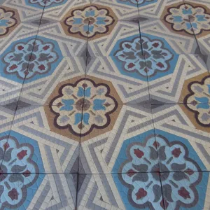 Restored with care, the tiles now reveal their original depth of color. Subtle tonal variations—hallmarks of artisanal production—imbue the floor with a sense of movement and individuality. These nuances, far from imperfections, are the very essence of its charm.