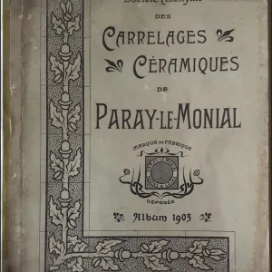 This exceptional, museum-quality ceramic floor originates from the esteemed usine of Carrelages Ceramiques de Paray-le-Monial, Saone et Loire in Burgundy, France and dates to 1903. It is a fine example of the artistic and technical brilliance of Paul Charnoz—an innovator of ceramic art who honed his craft at Boch Frères in the late 19th century before founding his celebrated workshop in Paray-le-Monial.
