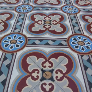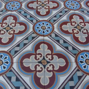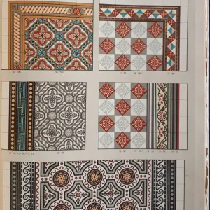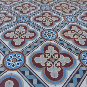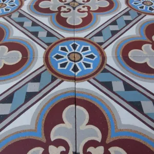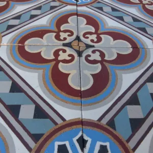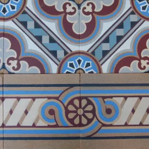 Our antique tiles were originally handmade in single or two tile molds. Pre-computer fabrication these molds were machined by hand & the colour slips to create the tile were mixed by measure and eye. When firing the tiles, the kiln temperatures of c.1,100F degrees could also be variable. The result of this production process is that tiles made during this period of non-automation often display subtle size & thickness variations and there can be tonal variations in colors, all of which add to their charm and uniqueness. When photographing a floor, we always take a random section so that it is representative of the whole in tones and patina.