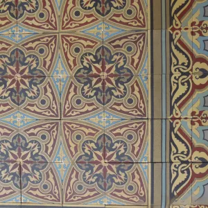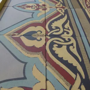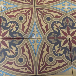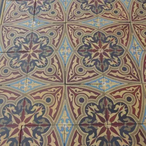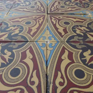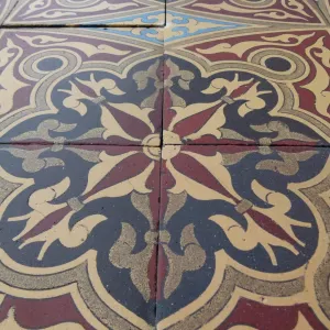Our antique tiles were originally handmade in single or two tile molds. Pre-computer fabrication these molds were machined by hand & the colour slips to create the tile were mixed by measure and eye. When firing the tiles, the kiln temperatures of c.1,100F degrees could also be variable. The result of this production process is that tiles made during this period of non-automation often display subtle size & thickness variations and there can be tonal variations in colors, all of which add to their charm and uniqueness. When photographing a floor, we always take a random section so that it is representative of the whole in tones and patina.
