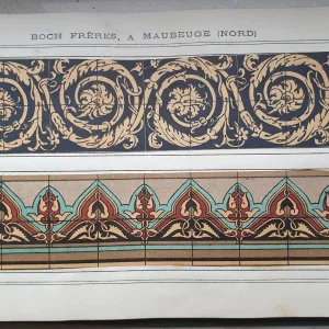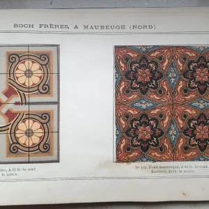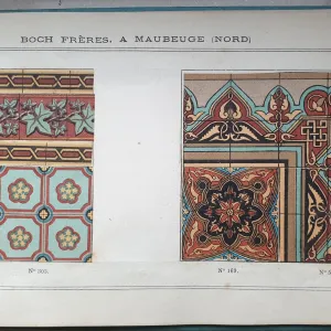 Simply stunning in its intricate detail this impressive and rare French ceramic was handmade in 1881 by Carrelages Ceramiques, Boch Freres, Maubeuge. Quality, heavy ceramics, 6.8 inches sq and weighing over 50 ozs each they offer their Moorish inspired design in a warm palette. The principal field tiles are framed by a lush and indulgent double border, laid back to back.