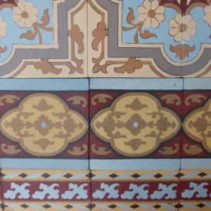 NOTE Antique tiles were most commonly made in single or two tile moulds. Before current computer automation methods, their moulds were made by hand and the colour slips mixed by eye. Kiln temperatures could also be variable, as could the firing time. The result is that tiles often display subtle size and thickness variations and there can be tonal variations in colours, owing to the slip mixing and/or firing time. All of this makes these handmade tiles unique and adds to their charm. Some floors display their subtle variations in size and tone, some not, but when photographing we always take a random section of the floor so that it is representative of the whole. A tiler should always dry lay a section of the tiles to familiarise himself with them before starting to fix them.