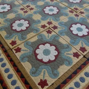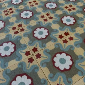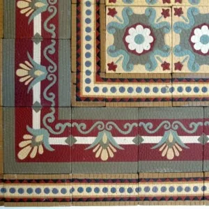 Our antique tiles were originally handmade in single or two tile molds. Pre-computer fabrication these molds were machined by hand & the colour slips to create the tile were mixed by measure and eye. When firing the tiles, the kiln temperatures of c.1,100F degrees could also be variable. The result of this production process is that tiles made during this period of non-automation often display subtle size & thickness variations and there can be tonal variations in colors, all of which add to their charm and uniqueness. When photographing a floor, we always take a random section so that it is representative of the whole in tones and patina.