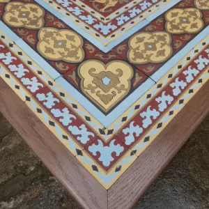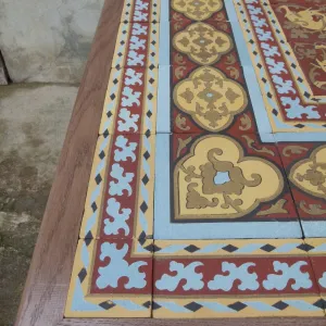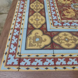 In the latter stages of restoration, a preview our rarest find to date; a triple border handmade French floor manufactured in 1880 by Carrelages Ceramiques Boch Freres Maubeuge.