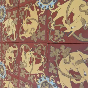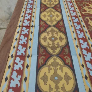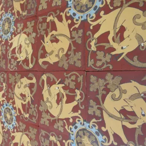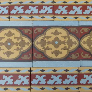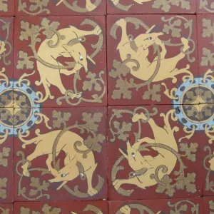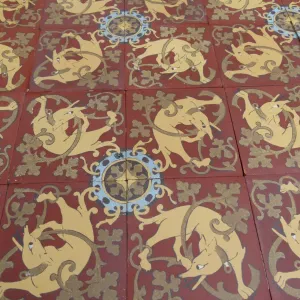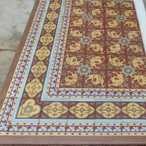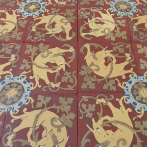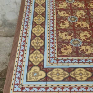 Our antique tiles were originally handmade in single or two tile molds. Pre-computer fabrication these molds were machined by hand & the colour slips to create the tile were mixed by measure and eye. When firing the tiles, the kiln temperatures of c.1,100F degrees could also be variable. The result of this production process is that tiles made during this period of non-automation often display subtle size & thickness variations and there can be tonal variations in colors, all of which add to their charm and uniqueness. When photographing a floor, we always take a random section so that it is representative of the whole in tones and patina.